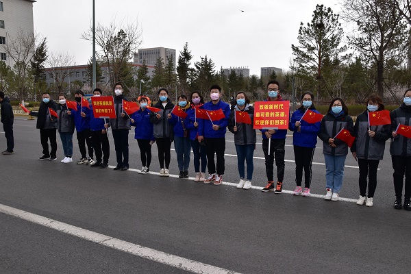 參加活動的全體人員在黨支部書記王軍的帶領(lǐng)下早早來到車隊行駛的新華大街,統(tǒng)一穿著工作服,佩戴黨徽翹首以盼,站在道路兩旁等待著抗疫英雄回家。13時,載著呼和浩特援鄂醫(yī)療隊的大巴車出現(xiàn)在大家的視線里,現(xiàn)場立即沸騰起來,大家歡欣鼓舞,揮動著手中的國旗,高舉歡迎標(biāo)語,響起熱烈的掌聲,吶喊共同的心聲,向白衣天使致以最崇高、最真誠的敬意。