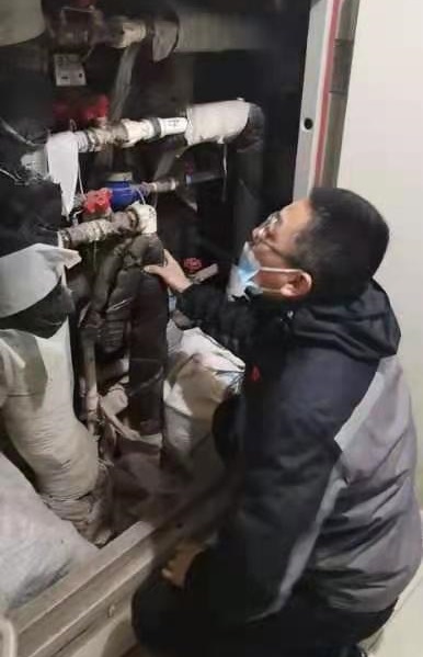在水晶閣小區(qū),工作人員分成四組走訪,發(fā)放宣傳冊,解答用戶提出的各類供熱問題。走訪中,發(fā)現(xiàn)2戶居民家中溫度偏低,室溫在19℃左右。經(jīng)排查用戶家中供水熱、回水涼,濾網(wǎng)和地盤管存在堵塞現(xiàn)象,清洗濾網(wǎng)后溫度明顯有所提高。其他用戶溫度均在20-24.4℃,用戶表示近期供熱情況良好,非常滿意。