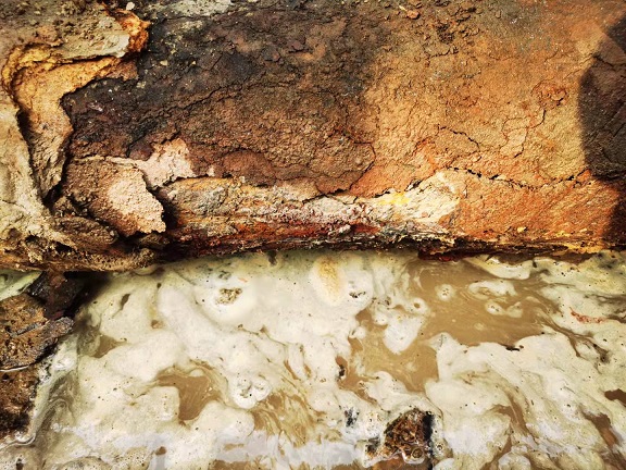 經(jīng)過勘驗(yàn),確定為一次管網(wǎng)支線管道漏水。由于管網(wǎng)埋藏較深,管道上方有電纜、二次管網(wǎng),大大增加了施工難度。在搶修中,挖掘機(jī)先對(duì)故障點(diǎn)周圍進(jìn)行開挖,再由工人對(duì)供熱管道上的障礙物進(jìn)行排除,最終發(fā)現(xiàn)管道漏點(diǎn)位置多處跑水,管道腐蝕比較嚴(yán)重,決定更換管徑為DN250的14米管道。